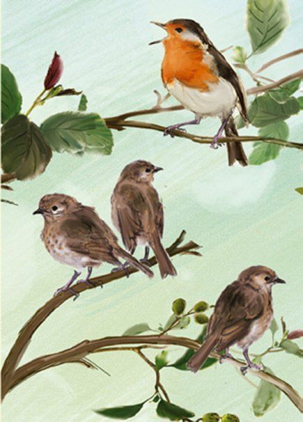 große Hühner in den Farben Gelbn, Grün und Schwarz